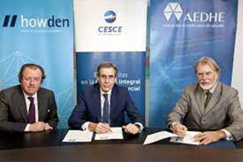 A la firma, celebrada esta mañana en la sede de CESCE en Madrid, han asistido el Presidente de AEDHE, Jesús Martín Sanz; el Director General de Reaseguros & Specialties de Howden Iberia, Eduardo Real de Asúa; y Pablo Cabanas, Director Territorial Centro de CESCE.