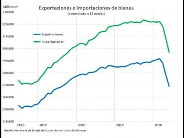 Según dato de Aduanas, las exportaciones españolas de mercancías se redujeron un 17,2% en el periodo enero-mayo respecto al mismo periodo del año anterior…