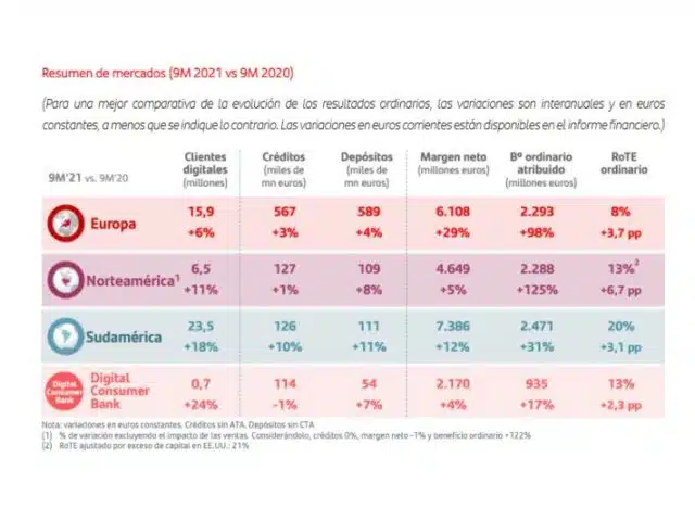 Banco Santander obtuvo un beneficio atribuido de 5.849 millones en los nueve primeros meses de 2021, frente a unas pérdidas de 9.048 millones en…